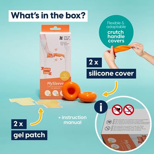 MySleeve - Coperture per manici di stampelle (set di 2) con inserti in gel, prevengono la caduta delle stampelle e il dolore alle mani, dolore alle mani, impugnature confortevoli per stampelle.