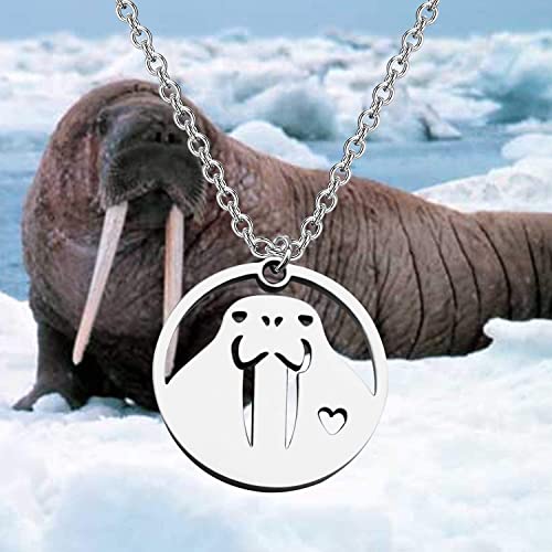 Materiale e dimensioni: realizzato in acciaio inossidabile e il colore è argento, non si ossida o cambia colore. È anche un'ottima scelta per chi ha sensibilità cutanea. Collana con ciondolo a forma di tricheco, diametro 2 cm, lunghezza della catena: 43,9 cm + 5 cm. Catena regolabile con moschettone.