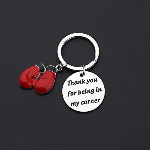 Mysomy - Portachiavi con guantoni da boxe, colore rosso, regalo sportivo, regalo di ringraziamento per essere nel mio angolo, per boxer, allenatore di boxe e Metallo, cod. NA