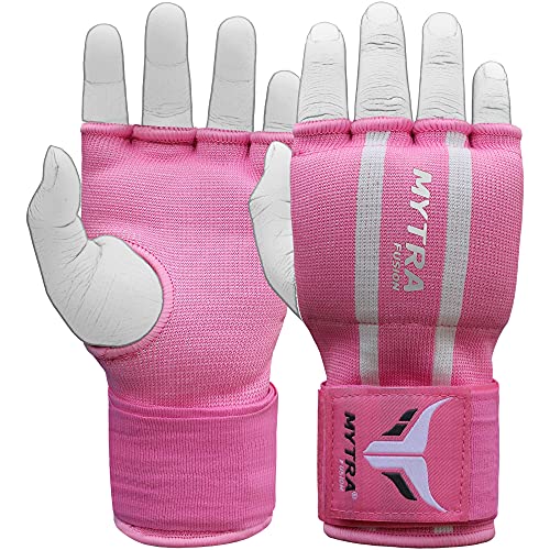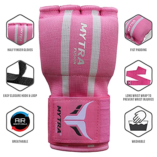Mytra Fusion Bambini Fasce Boxe sottoguanti Boxe Guanti di Protezione Easy Wraps Imbottiti in Gel Lungo la Chiusura del Cinturino da Polso (Kids, Pink/White)
