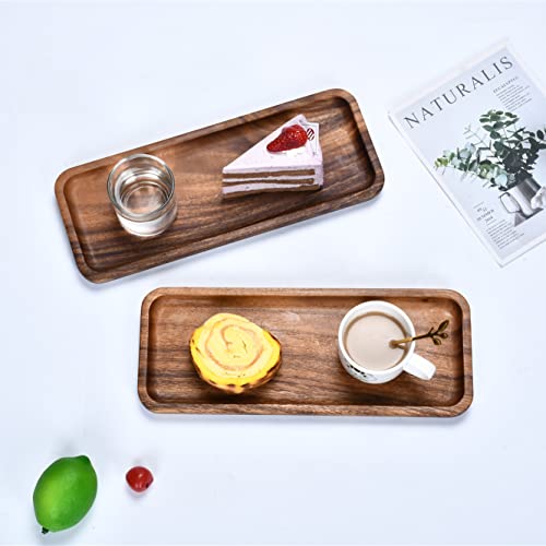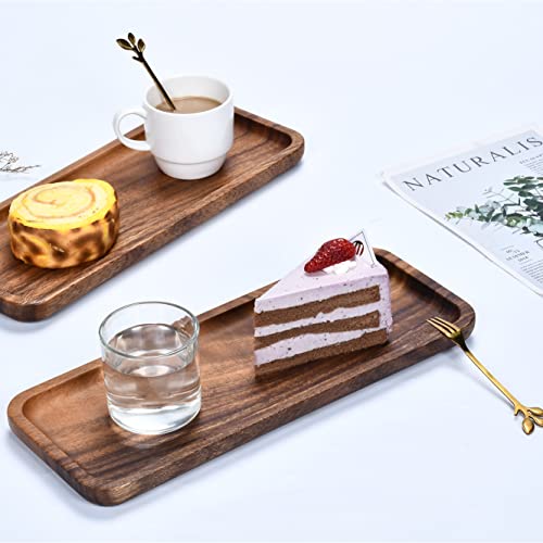 MYUANXI Vassoio da portata rettangolare in legno di acacia massiccio fatto a mano (32 x 12,7 x 2 cm) piatti da portata legno per alimenti, dessert, cena, colazione, insalata, piatti da portata sushi