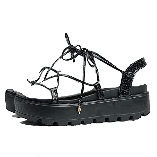 MYWA Sandali Alla Schiava Donna Estivi Platform Fibbia Aperti Cinturino Caviglia Comode (Black, numeric_40)