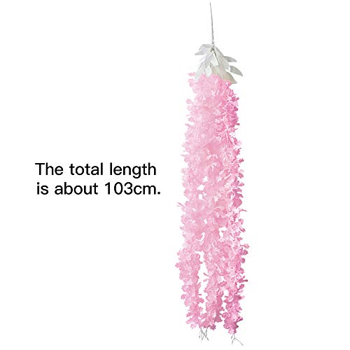 MZMing - Confezione da 2 ghirlande di Glicine Artificiali, da Appendere, in Rattan, per casa, Giardino, Matrimonio, Decorazione Floreale Rosa