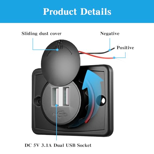Facile installazione: L'installazione e la rimozione sono semplici grazie alle viti di montaggio incluse. Il caricatore USB dispone di due porte e offre ulteriore sicurezza con il suo coperchio antipolvere e impermeabile.