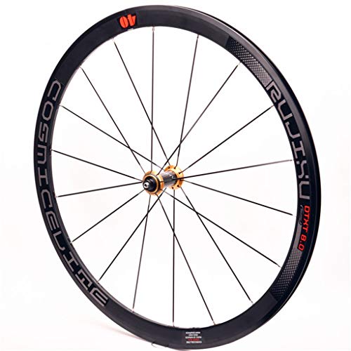 MZPWJD Coppia Ruote Bici Corsa 700c Bici Strada Cerchio Lega Doppia Parete 40mm 8-11 velocità 6 Cuscinetti Palin Mozzo in Fibra Carbonio Rilascio Rapido V-Brake 1900g (Color: Gold Wheel Set)