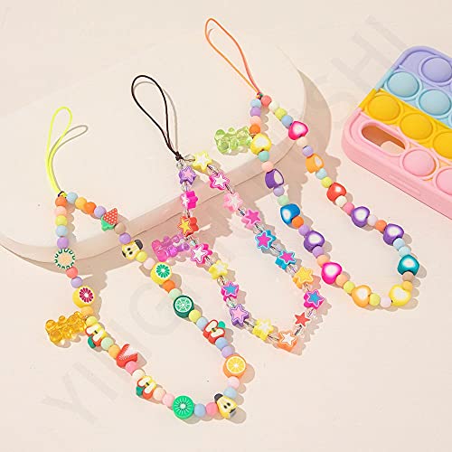 MZY118 Catena del Telefono, Ciondolo per Telefono con Perline in Argilla Multicolore con Cordino da Polso per Telefono con Perline(Pink-Heart)