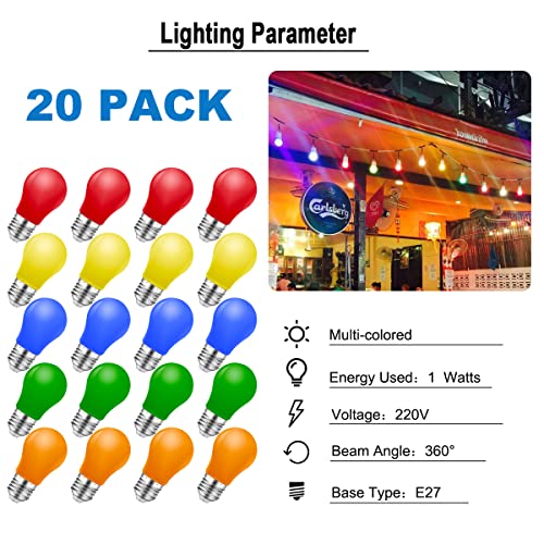 MZYOYO 1W Lampadina LED Colorata E27,Lampadina Colorata E27,K45 Lampadine Colorate,Colori Lampadine LED,Rosso Giallo Blu Verde Arancione,per le luci delle fate Decorazione Colorata,Confezione da 20