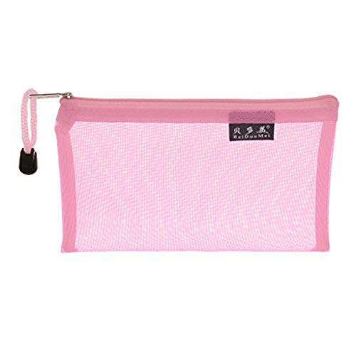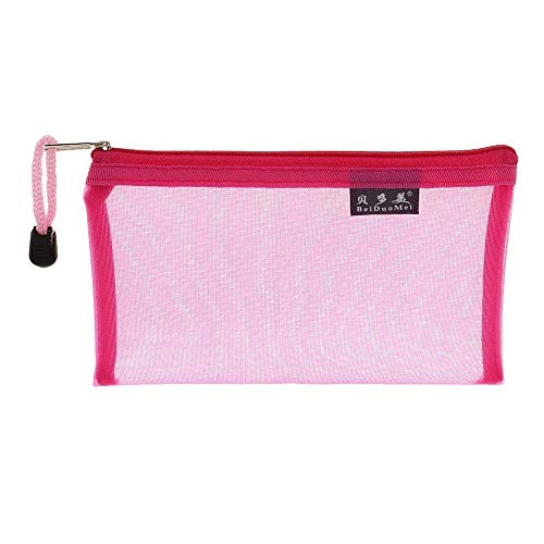 N-brand PULABO - Astuccio a rete trasparente per studenti, colore: rosa rosso, ecologico e pratico