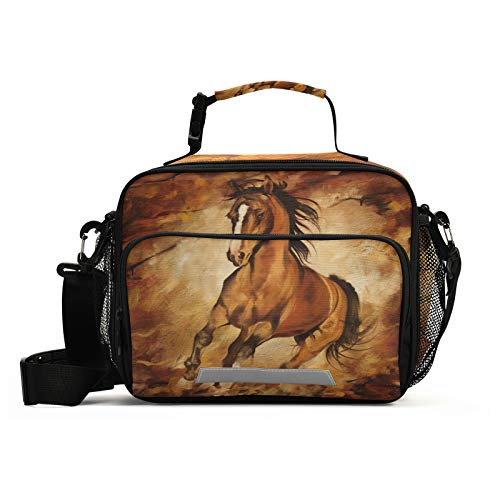 Naanle - Borsa per il pranzo a forma di cavallo, con tracolla regolabile, isolata a prova di perdite, con doppia cerniera, ampia apertura per il pranzo, per ufficio, lavoro, scuola