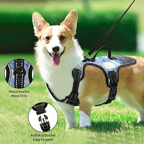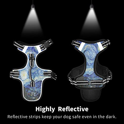 Naanle Van Gogh - Pettorina per cani da notte stellata con clip per guinzaglio, senza tirare morbida maglia imbottita per animali domestici gilet riflettente regolabile per cani e gatti