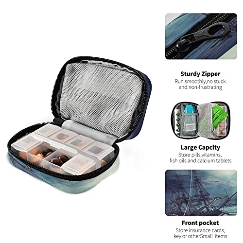 Naanle Pirate Nave Octopus Tentacles Pill Box 7 Day Pill Case Viaggio Pill Organizer Borsa con Cerniera Portatile Caso Settimanale Compatto per Porta-Integratori Vitamina