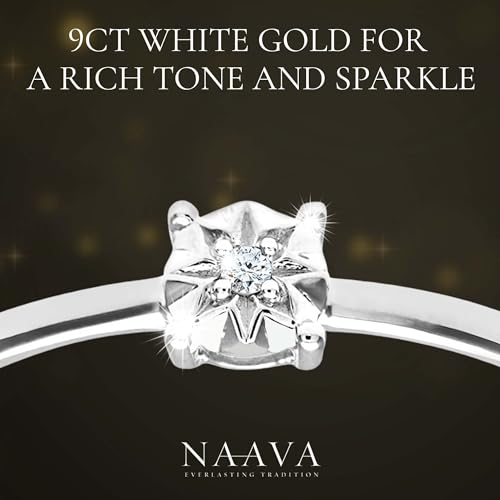 Naava Anello da Donna in Oro Bianco 9K con Diamante 0.01ct, Misura 14