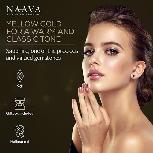 Naava Orecchini a Perno da Donna, Oro Giallo, 9 Carati, Diamante/Zaffiro Blu