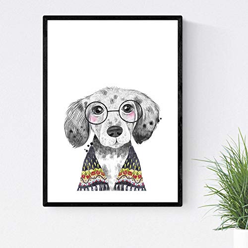 Nacnic I Bambini Lama Cane beve con Gli Occhiali e Gli Animali Infantili Sciarpa Poster in Formato A3 Senza Cornice