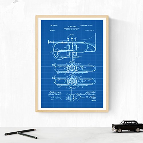 Nacnic Blu - Confezione da 4 Fogli di Brevetto Music. Impostare manifesti con invenzioni e Vecchi brevetti. Scegli Il Colore Che gradite. Stampato su Alta qualità 250 Grammi