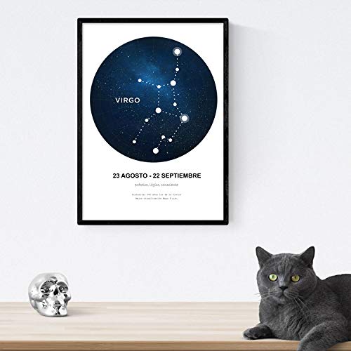 Nacnic Lamina costellazione della Vergine. Poster con simbolo zodiacale in misura A4 con telaio e sfondo bianco
