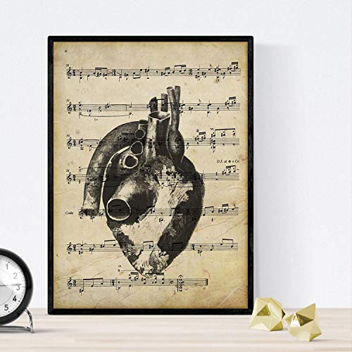 Nacnic Manifesto Cuore anatomico sulla spartiti. Immagini di Immagini con spartiti. Design Musicale per la casa. Dimensione A4 con Telaio