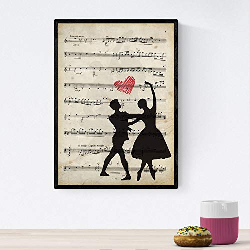 Nacnic Paio Poster punteggio Balletto. Le Immagini con Fogli di spartiti. Design Musica per la casa. Formato A4