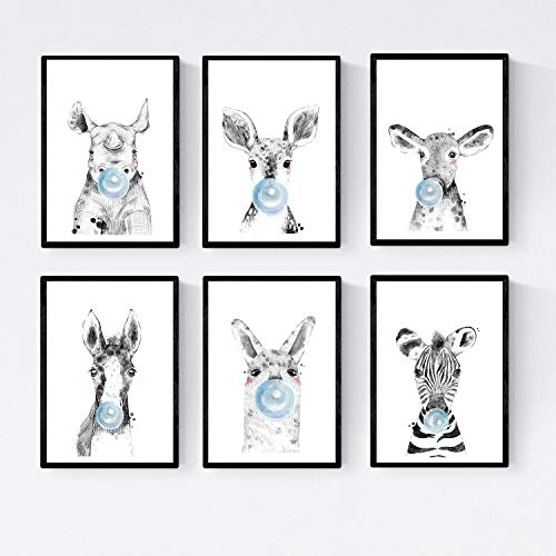 Nacnic Set 6 Poster Animali per Animali con Gomma da Masticare. Zebra Rino Deer Cow Horse Call.A5 A4. con Marco.