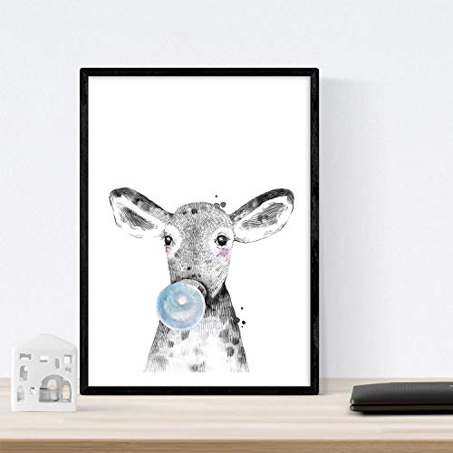 Nacnic Set 6 Poster Animali per Animali con Gomma da Masticare. Zebra Rino Deer Cow Horse And Flame. A3. con Marco.