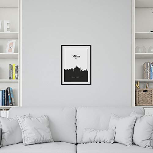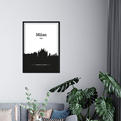 Nacnic Poster Mappa di Milano - Italia. Fogli Skyline con Le Città in Italia con Ombra Nera. Formato A4