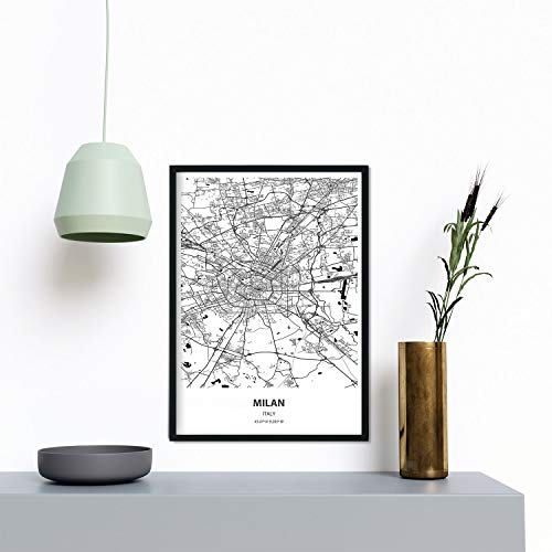 Nacnic Poster Mappa di Milano - Italia. Fogli Città in Italia con Mari e fiumi, in Colore Nero. Formato A3