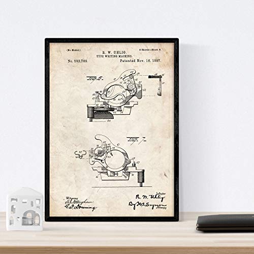 Nacnic stampa artistica con immagine di brevetto di macchina da stampaggio, tipografia, stampa VINTAGE. Manifesti con invenzioni e vecchi brevetti. 250 Grammi di alta Qualità.