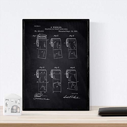 Nacnic Stampa artisticha VINTAGE sfondo nero brevetto carta igenica manifesti con invenzioni e vecchi brevetti. Poster vintage, disegni, brevetti, invenzioni famosi disegni.