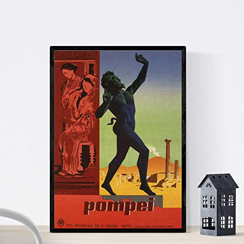 Nacnic Vintage Poster Poster d'Epoca di Francia e Italia. Incontra Pompei. Formato A4