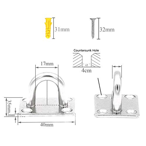 NACTECH 4pz Ancoraggio da Parete e Soffitto Placca Occhiello in Acciaio Inox 304 Piastra con Anello di Ancoraggio Ganci da Soffitto per Sospensione Incluso Viti e Tasselli