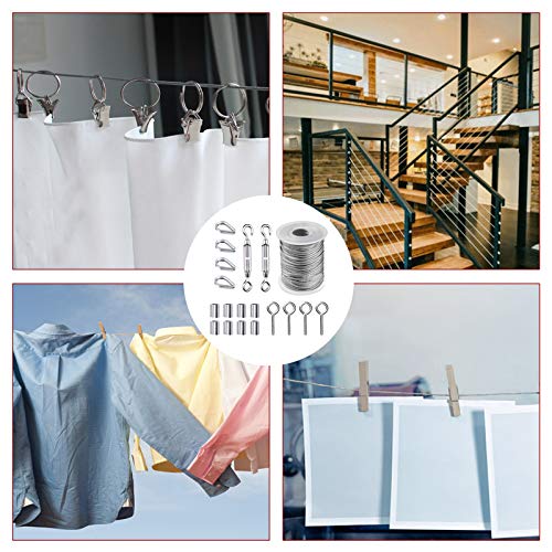 NACTECH Cavo Metallo 2mm Cavo in Acciaio Inossidabile da Sospendere Fune Metalliche da 15m Corda Inox con Manicotto a Crimpare Filo Sospeso Rivestito per Sospensione Telaio Piante Stendibiancheria