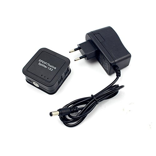 Nadalan Portable Mini Splitter per fibra ottica TOSLINK SPDIF 1x3 digitale Splitter per uscita audio 3 input 3 con adattatore UE / USA / Regno Unito