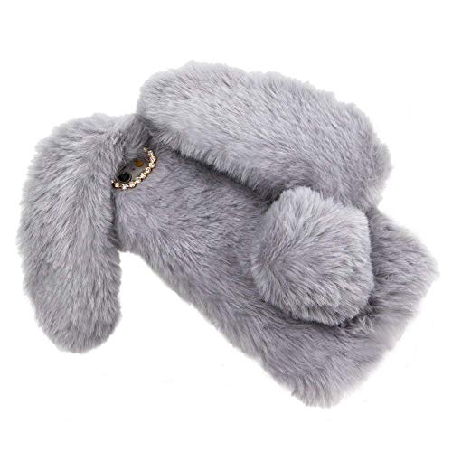 Nadoli Custodia per iPhone 8 Plus / 7 Plus 5.5",Inverno Orecchio di Coniglio Faux Bunny Fur Morbido Carina Soffice Peloso Indietro Astuccio Caso Cover Copertina,Grigio