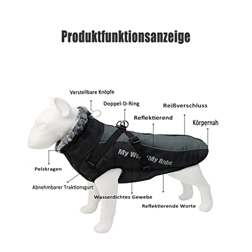 Naglreia Cappotto invernale per cani di grossa taglia con pettorina rimovibile, caldo e riflettente, antivento, impermeabile (grigio, 5XL)