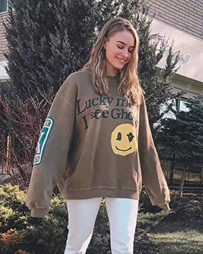 NAGRI Lucky Me I See Ghosts Felpe Uomo Senza Cappuccio Cachi,M
