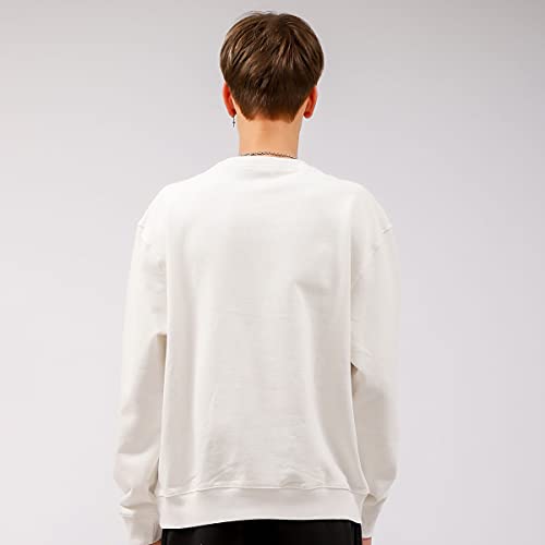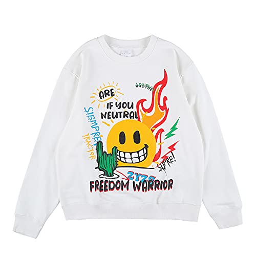 NAGRI Smile Face Felpe Uomo Senza Cappuccio Bianco,L