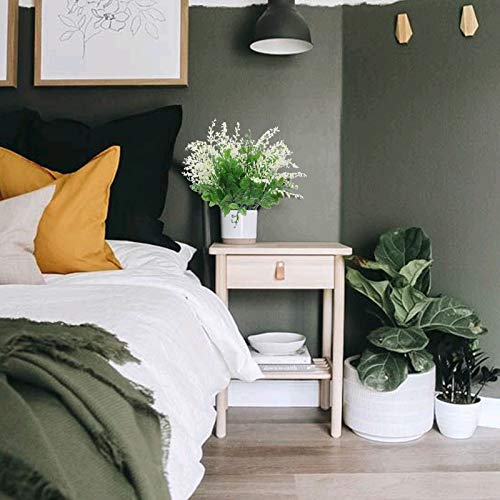 La pianta artificiale è fatta di plastica, punteggiata di mini boccioli di fiori bianchi, l'aspetto è molto reale, non facile da sbiadire. Non tossico e innocuo, puoi usarlo con sicurezza. È la scelta migliore per le persone allergiche al polline.