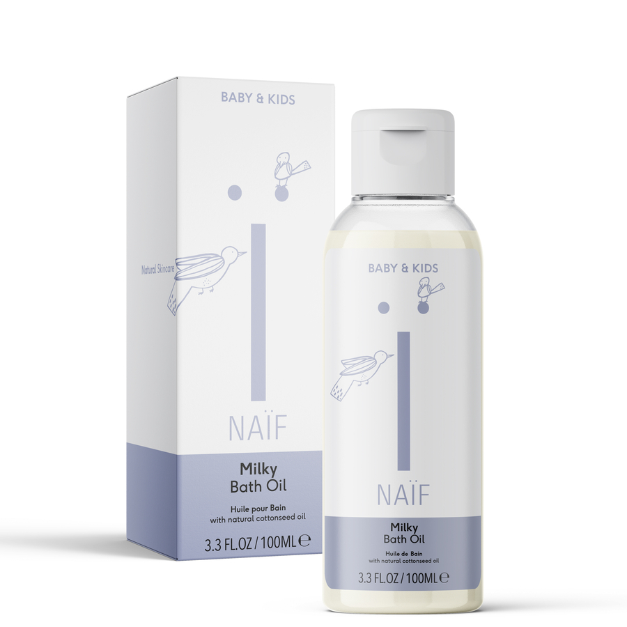È giunto il momento del B aden . Purtroppo l'acqua asciuga la pelle sensibile del bambino. Bisogna fare qualcosa in proposito, ed è per questo che abbiamo sviluppato l'olio da bagno nutriente Naïf Nourishing Bath Oil. Un olio da bagno lattiginoso che idrata la pelle del bambino, si scioglie bene e ammorbidisce l'acqua del bagno. E questo senza scivolare! Privo di conservanti chimici e sostanze nocive come PEG, SLS, SLES, fenossietanolo, parabeni o olio minerale. L'olio per il bagno dei bambini viene invece fornito con ingredienti curativi come la camomilla e l'olio di semi di cotone. ingredienti: Trigliceridi caprilici/trigliceridi caprilici/caprilici/caprilici/caprati, capsule di cocco, capsule di glicerile, palmitato di poligliceril-3, profumi, erbaceo di gossypium ( Cotton ) Olio di semi, tocoferolo, Helianthus Annuus (Sun flower ) Olio di semi, bisabololo