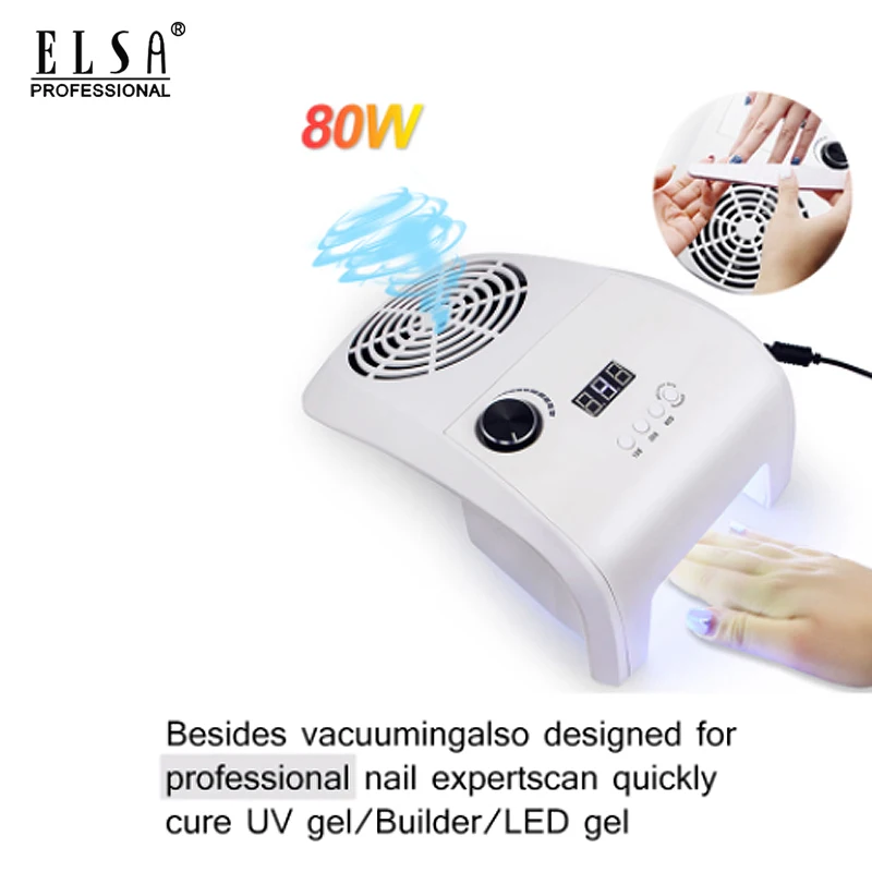 80W 2 In 1 UV LED Nail Lamp with Nail Dust Cleaner Nail Polish Dryer 2 Dust Bags for Manicure Nail Vacuum Cleaner Nail Art Tools