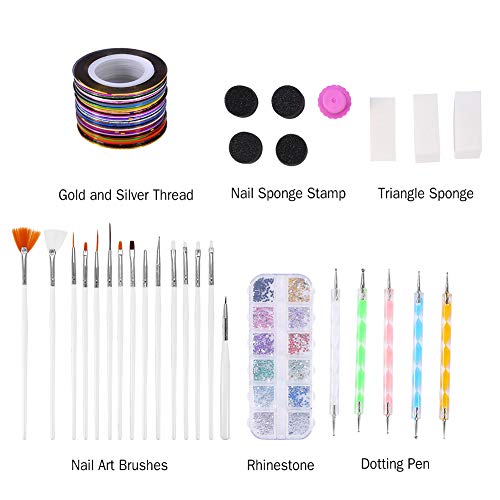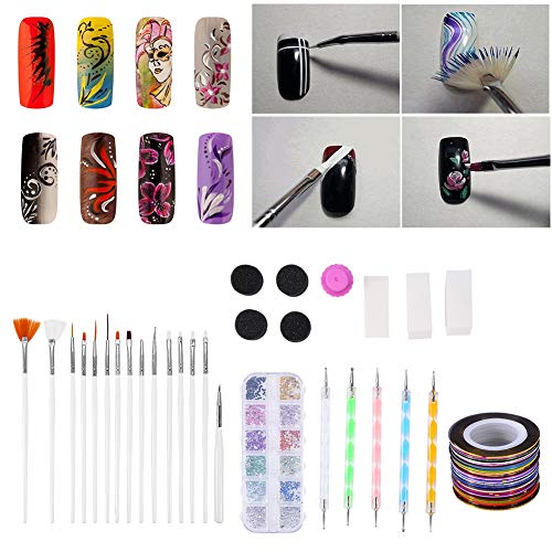 KIT ARTISTICO PER UNGHIE PROFESSIONALE INCLUSO Con spazzole per unghie da 15 pezzi, strumenti per la foratura, nastro per manicure e timbri in spugna, puoi soddisfare tutte le tue esigenze.