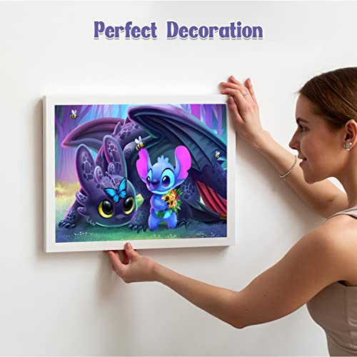 NAIMOE Stitch Diamond Painting Bambini, Drago Diamond Painting Kit Completo Adulti, 5D Pittura Diamante Cartone Animato Arte Kit, DIY Diamant Painting Craft Arts per Decorazione della Parete 30x40cm