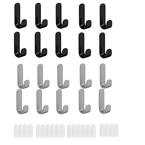 Naisfei 20 Pezzi Ganci autoadesivi da parete piccoli ganci autoadesivi Ganci autoadesivi di alta qualità ganci adesivi da parete in plastica senza fori per bagno cucina guardaroba(Nero, grigio)