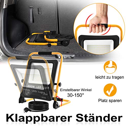 Faretto da costruzione a LED - Proiettore LED da 200W, temperatura di colore: bianco freddo: 6000-6500K. Voltaggio: AC85-265V, angolo del fascio: circa 120 °, cavo di alimentazione: 3 m (con spina UE), collegabile a qualsiasi presa europea.