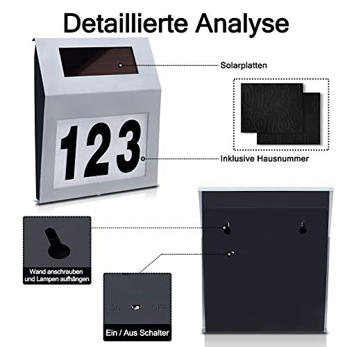 NAIZY Numero Civico Solare LED in Acciaio Inossidabile con 2 LED, Sensore Crepuscolare e Pannello Solare al Silicio Amorfo - Silver