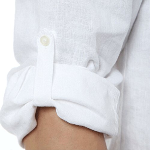 Najia Simbol Uomo 100% Lino Manica Lunga Camicie Casuale Little Club Collar 303