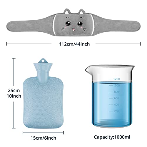 NAJILI Cintura per bottiglia dell'acqua calda 3 in 1, borsa dell'acqua calda da 1 l, con copertura, graziosa cintura termica, perfetta per pancia, schiena e collo e spalle (gatto)