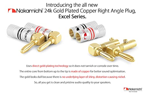 Nakamichi connettori a banana 12-18 AWG 4 mm placcati in oro 24 K adattatore spina a banana per altoparlanti cablati, amplificatore per altoparlanti HiFi 12 pezzi (6 paia) Spine a banana angolate