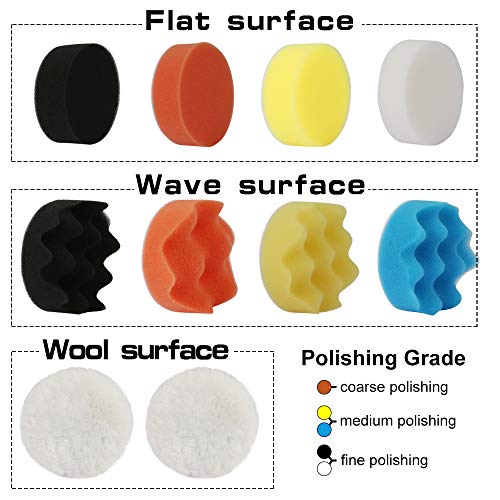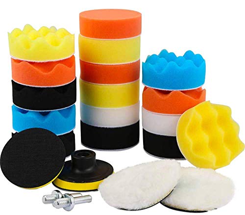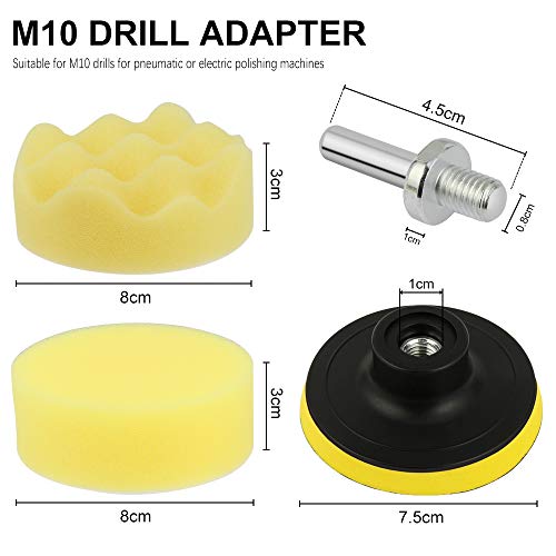 Nakeey - Spugna per lucidatura auto, 22 pezzi (3 pollici), punta per lucidatura, set di tamponi per lucidatura auto, spugna e tampone di lana, set di dischi per lucidatrice M10