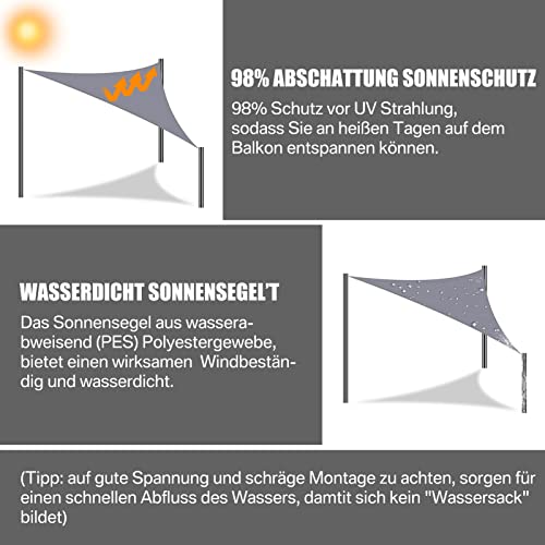 【Resistente ai raggi UV e impermeabile】Questa tenda parasole triangolare offre un'ombra sicura dalla luce diretta del sole o dalla pioggia. Non è solo impermeabile, ma anche resistente ai raggi UV al 98%. Lasciate che voi e la vostra famiglia godiate una zona fresca e sicura in giardino.