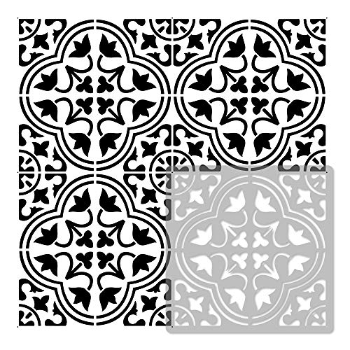 NAKLEO Moro Stencil Riutilizzabile in Plastica per Piastrelle - 20x20cm - Spagnolo Floreale Moresco - Marocchino Geometrico - Paver Blocco Pavimento Muro Modello Pittura Legno
